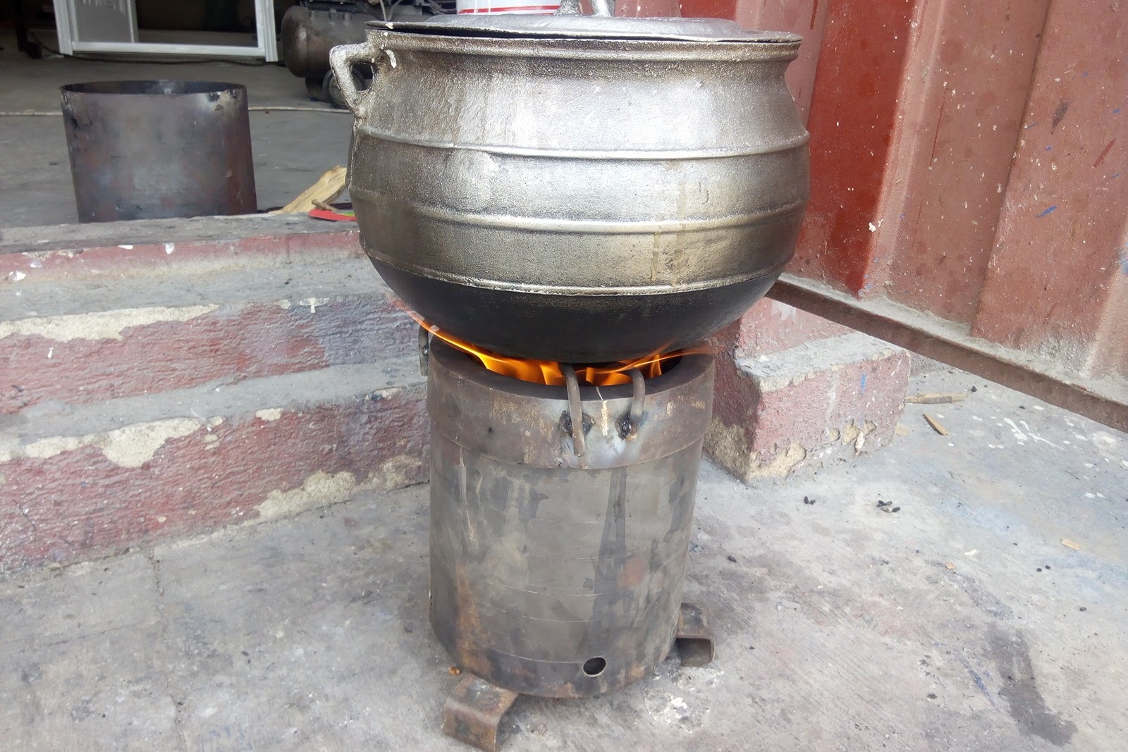 To counter these issues, we, in collaboration with a German apprentice in metal processing and the Methodist Rural Technology Facility, have developed a clean pyrolysis stove. This stove was built in a metal workshop here in Offinso and contributes to the creation of local jobs. The stove is simply loaded with firewood from the top and ignited. It provides a very hot cooking flame for about an hour. Afterwards, the stove can be emptied. The firewood doesn't turn to ash but produces valuable charcoal due to the special wood gasification process. The stove can also be used as a charcoal burner.